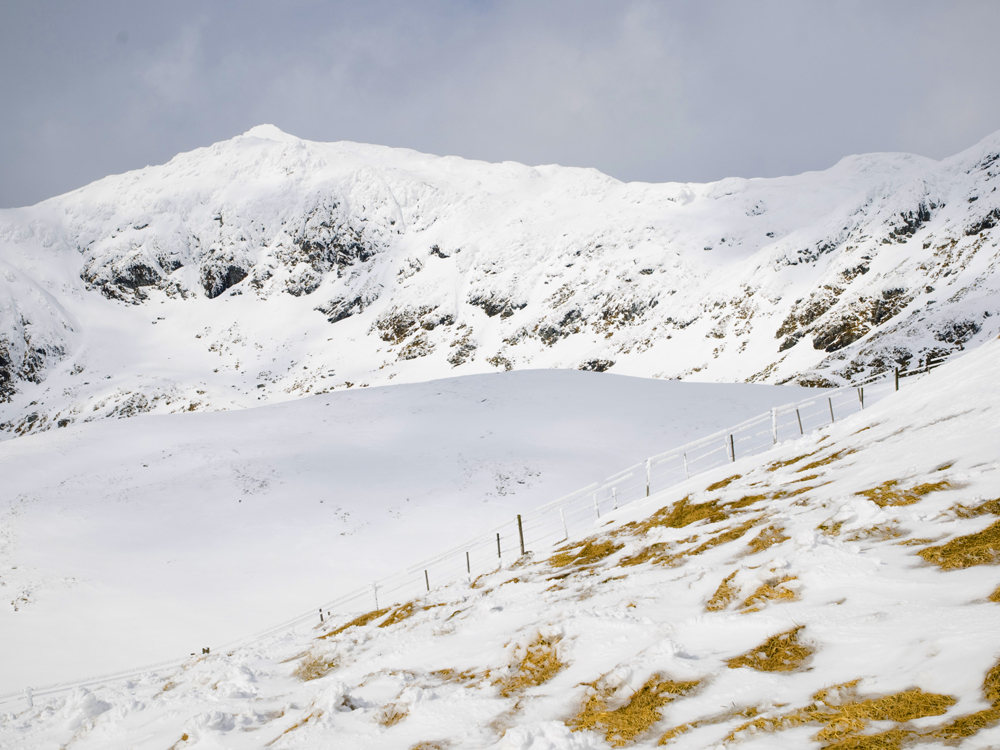 Zima na grani Tarmachan często przynosi kilkunastocentymetrową pokrywę śnieżną, więc jeśli zaplanujesz przejść całą grań zabierz kije lub czekan, i raki lub mini-raczki.